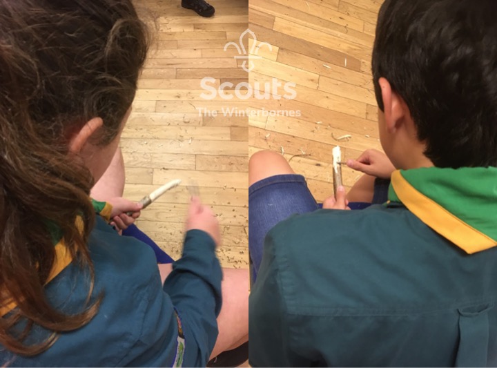 Scouts had a go at whittling. Attempting to make a bread knife