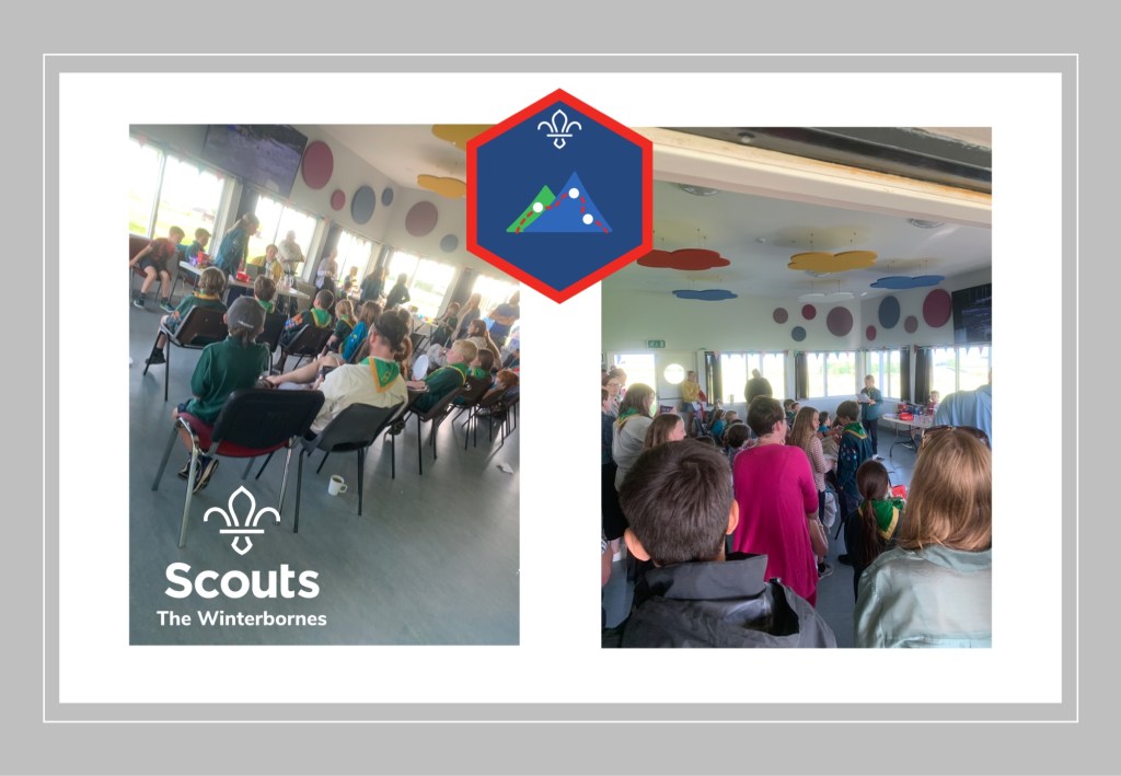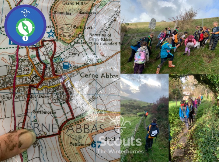 We all (Beavers, Cubs & Scouts) met at Cerne Abbas Village Hall and learnt some navigation / compass skills before heading out on a hike. The highlight for some Scouts… just after reaching the summit they had hale stones pelting them for a few minutes!