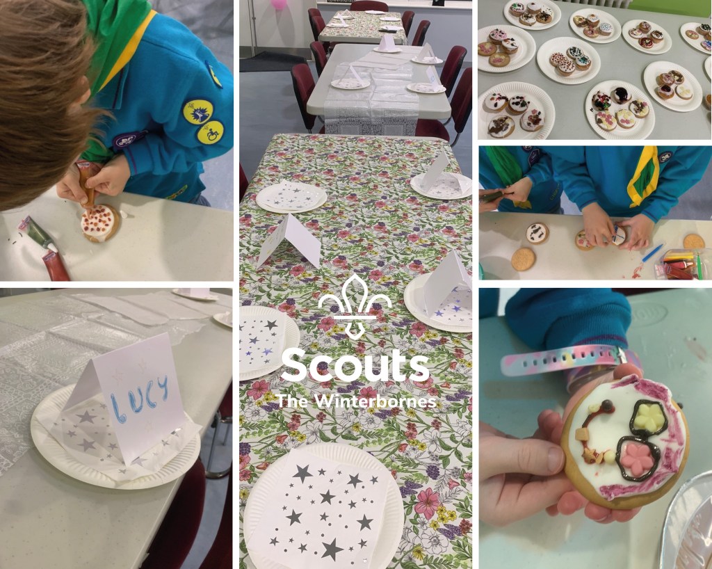 Beavers decorated biscuits and cakes, made lovely cards, set a table, welcomed their loved ones and served them hot/cold drinks