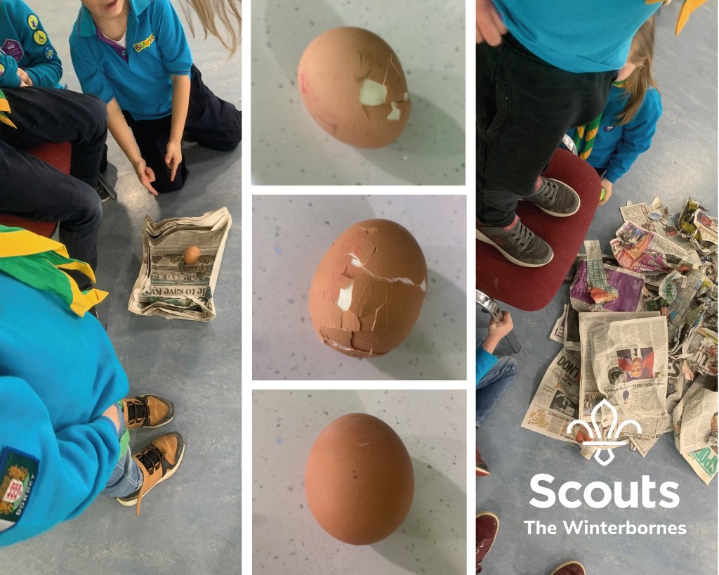 Beavers have been working on improving Teamwork skills. One of their challenges, was to work together to build a nest that would capture and egg from a height and soft enough that the egg wouldn’t break…