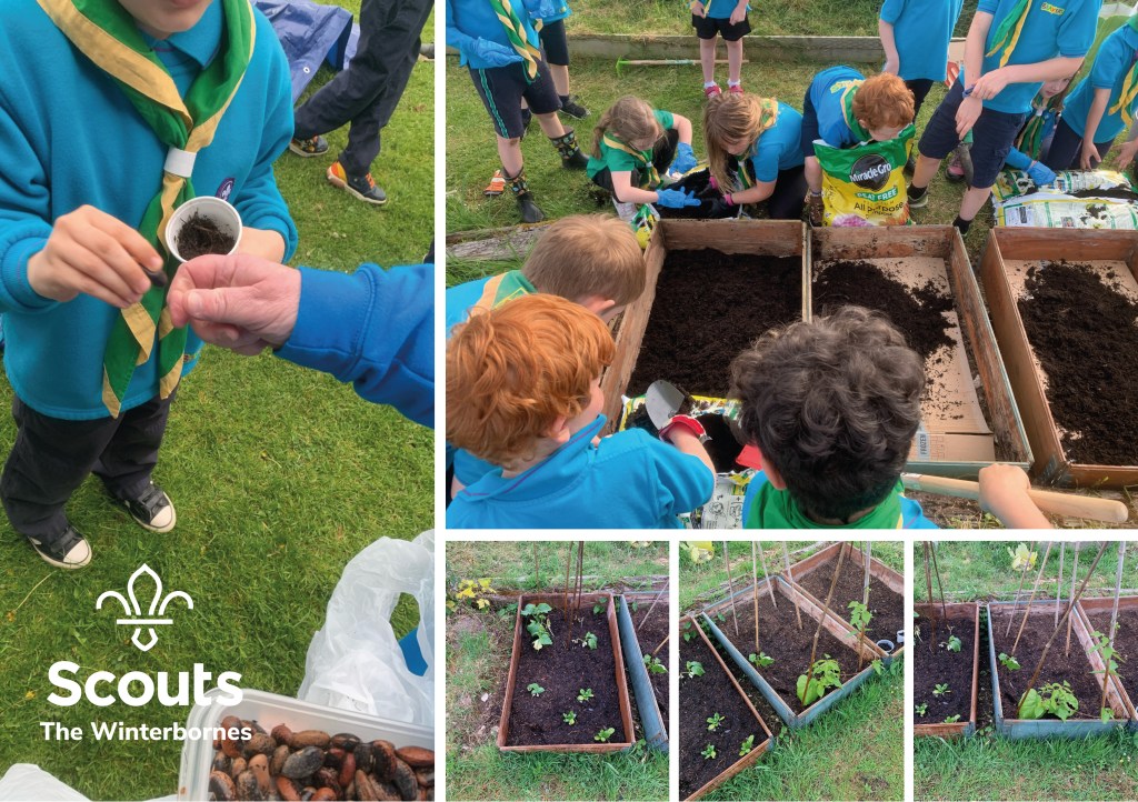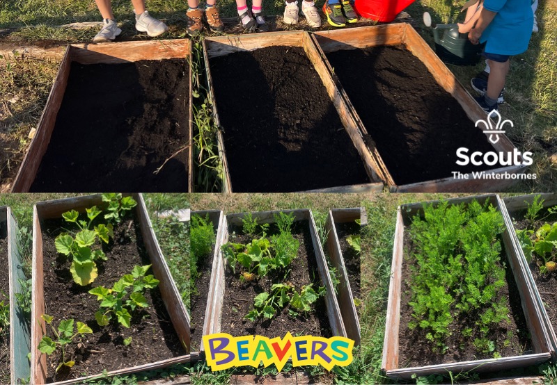 Beavers have planted seeds and watching them grow at the allotment… hopefully we will have some lovely vegetables for Summer Camp this year!