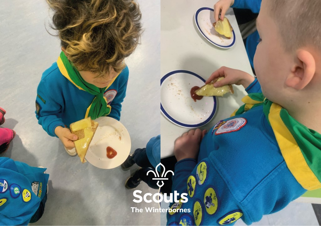 Beavers made cheese on toast – also part of our St David’s Day activities (celebrating the patron saint of Wales)