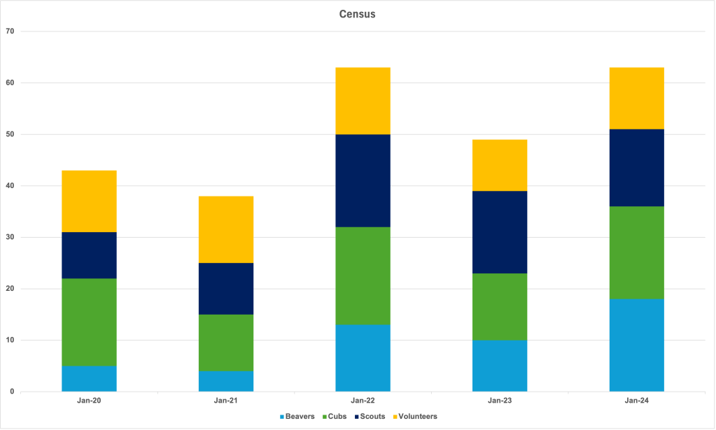 We have a nice even spread of numbers throughout each section and we have a great number of young people moving on to the next sections and into young leadership roles!